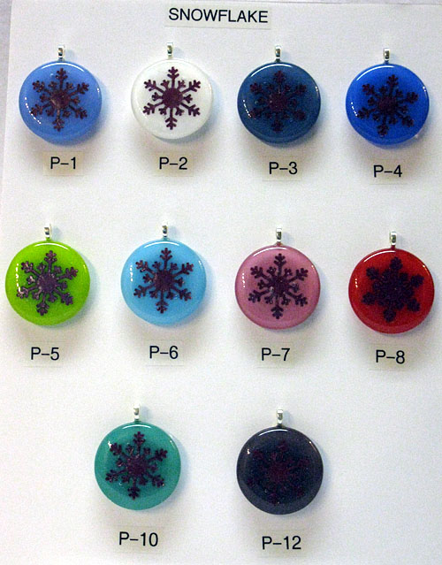 PENDANTS Price: $20.00 CDN each Order now -- click here! Price includes sterling silver plated bail. Shipping and handling are extra. Wholesale pricing is available - please contact us. Colour key: P-1: Periwinkle P-2: White P-3: Powder Grey / Purple P-4: Cobalt Blue P-5: Spring Green P-6: Light Cyan P-7: Petal Pink P-8: Tomato Red P-9: Mineral Green P-10: Apple Green P-11: Deep Cobalt Blue P-12: Plum P-13: Pink P-14: Black P-15: Red PAPERWEIGHTS Price: $65.00 CDN each Order now -- click here! Size is approximately 3 1/2" high by 4" across. The patterns in these paperweights are random and gorgeous. Makes an ideal gift for that special business-oriented person in your life who seems to have everything else. Also makes an attractive and novel conversation piece for any tabletop space in your home. ![]() ![]() Colour key (above centre, and left to right): R-61: White R-5: Pink R-10: Purple R-35: Green R-41: Blue R-19: Topaz MAPLE LEAF PAPERWEIGHTS Price: $40.00 CDN each ![]() Maple Leaf paperweights range in size from approximately 3 - 3 1/2" across. Choose from paperweights with 3 large Maple Leaves or 5 small Maple Leaves inside. Colour key (above left to right): L-1: 5 small maple leaves L-2: 3 large maple leaves BOWLS & SCULPTURES These beautiful and unique pieces will make their online debut soon. Please contact us for details. |